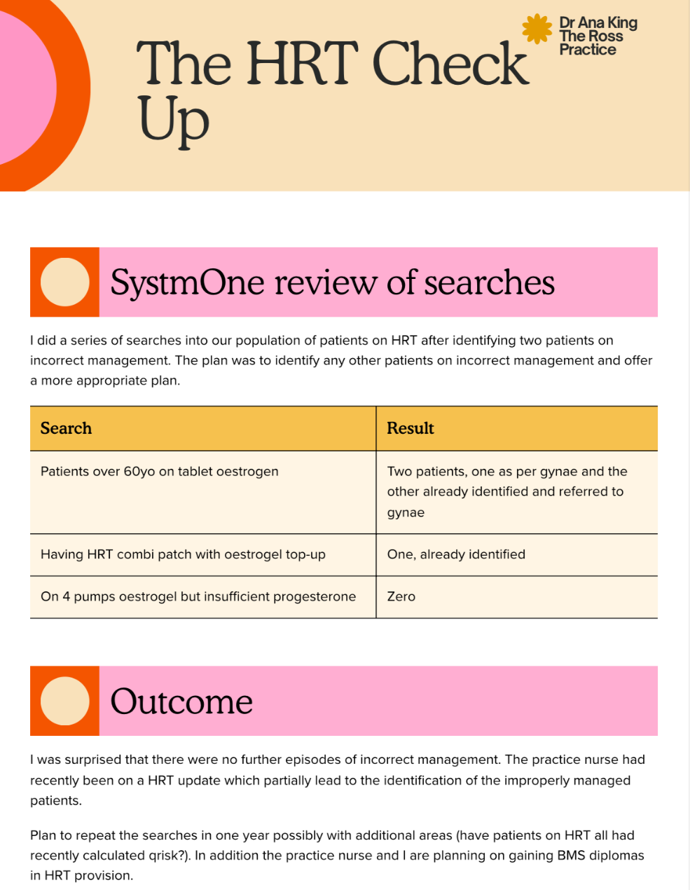 I am very interested in menopause care; For this reason, I decided to run some searches to see how compliant my practice was with HRT guidance.